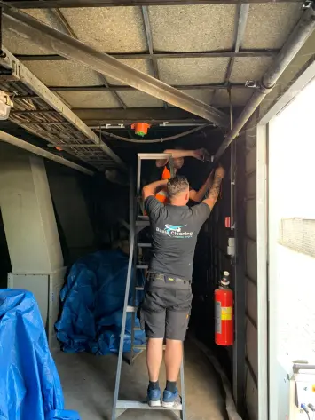 Door het temperatuurverschil tussen de oppervlakte en de droogijs korrels (-80°C) ontstaan er micro scheurtjes in de vervuiling. Waardoor de vervuiling bros wordt en komt los komt.